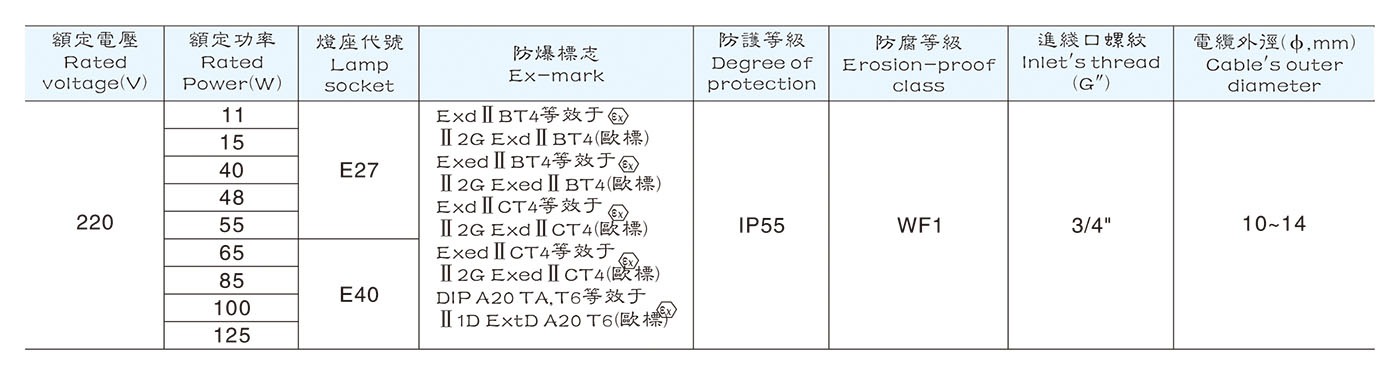 2. 燈罩采用高硼硅鋼化玻璃。透光率高,可承受高強沖擊;
