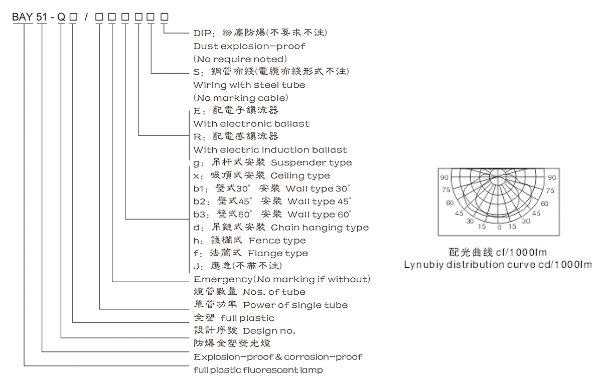 3. 內裝電子鎮流器為我公司特制的防爆鎮流器,具有短路和開路保護性能,針對燈管的老化效應和漏氣現象預防電路,使燈具能正常工作,且高效節能COSφ≥0.98,具有寬電壓輸入,在電