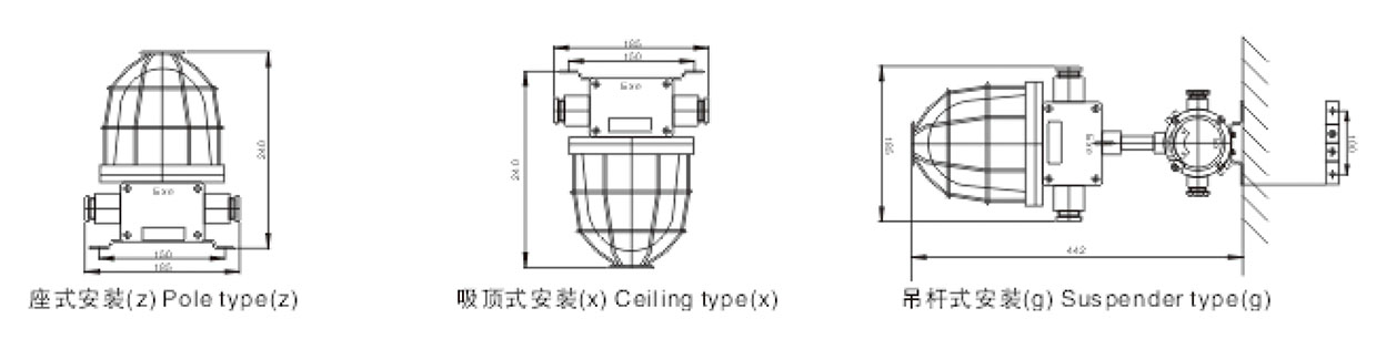 2. 鋼化玻璃燈罩、強度高、耐沖擊,顏色有紅、黃、藍等供選擇;