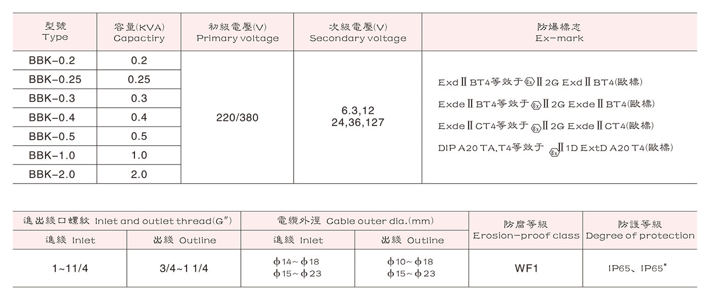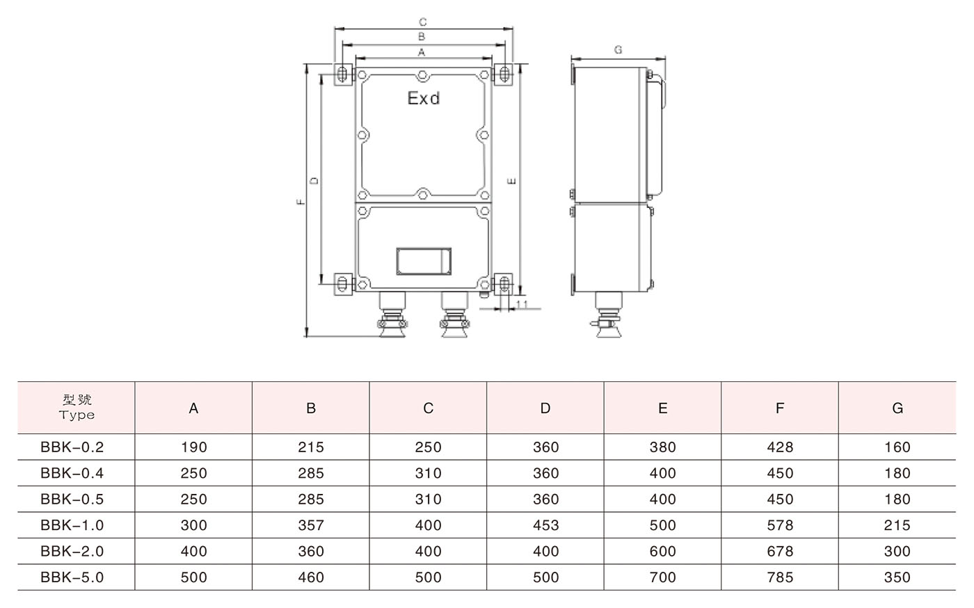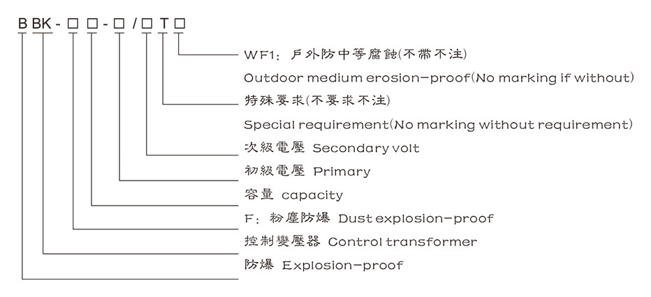 1. 按照型號含義中的規則逐條進行選擇,并在型號含義后增加防爆標志。