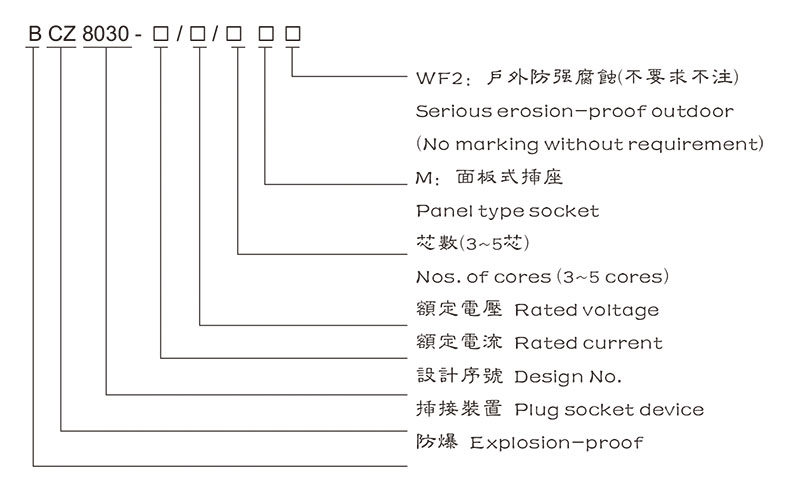 1. 按照型號含義中的規則逐條進行選擇,并在型號含義后增加防爆標志。