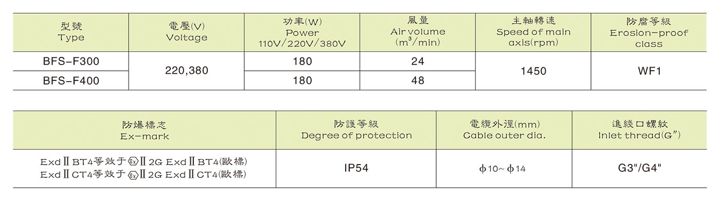 1. 產品由防爆電機、葉片、風筒等組成,葉片由鑄鋁合金制成,風筒由鋼板制成;