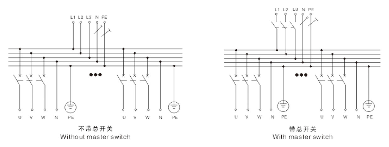 1. 用戶在訂貨時(shí),需注明配電箱的回路數(shù),各回路數(shù)相應(yīng)的電流及斷路器的極數(shù),若需帶漏電功能,則還需注明;若需帶總開關(guān)則注明總開關(guān)的電流和極數(shù),并注明進(jìn)出線的方向,進(jìn)出線規(guī)格及對應(yīng)的數(shù)量。