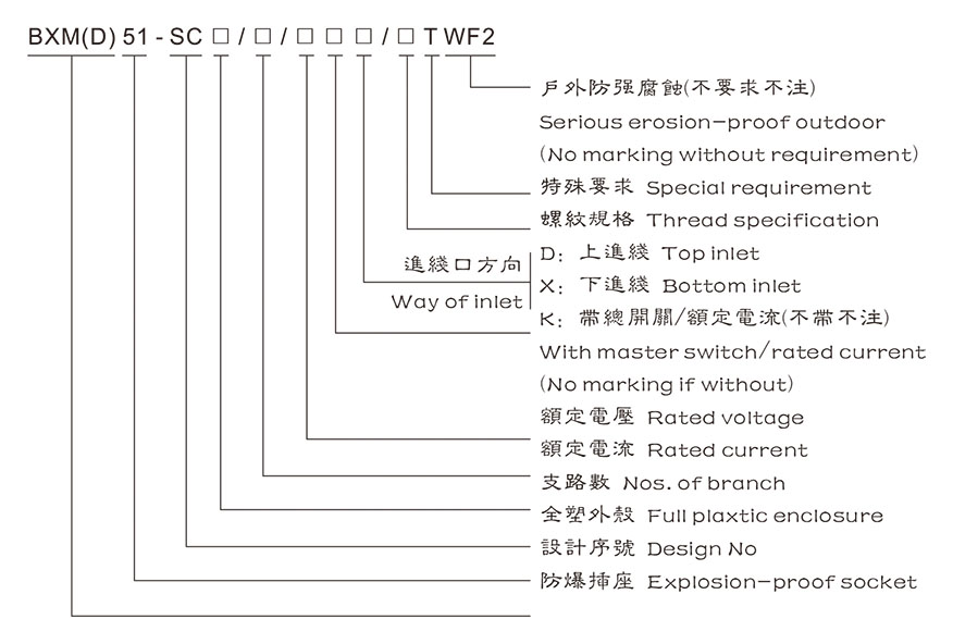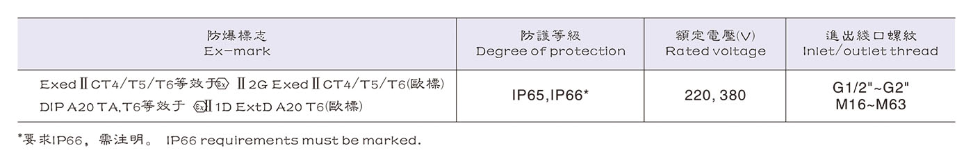 1. 按照型號含義中的規則逐條進行選擇,并在型號含義后增加防爆標志。