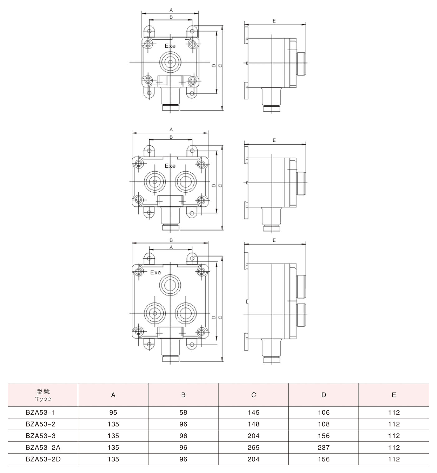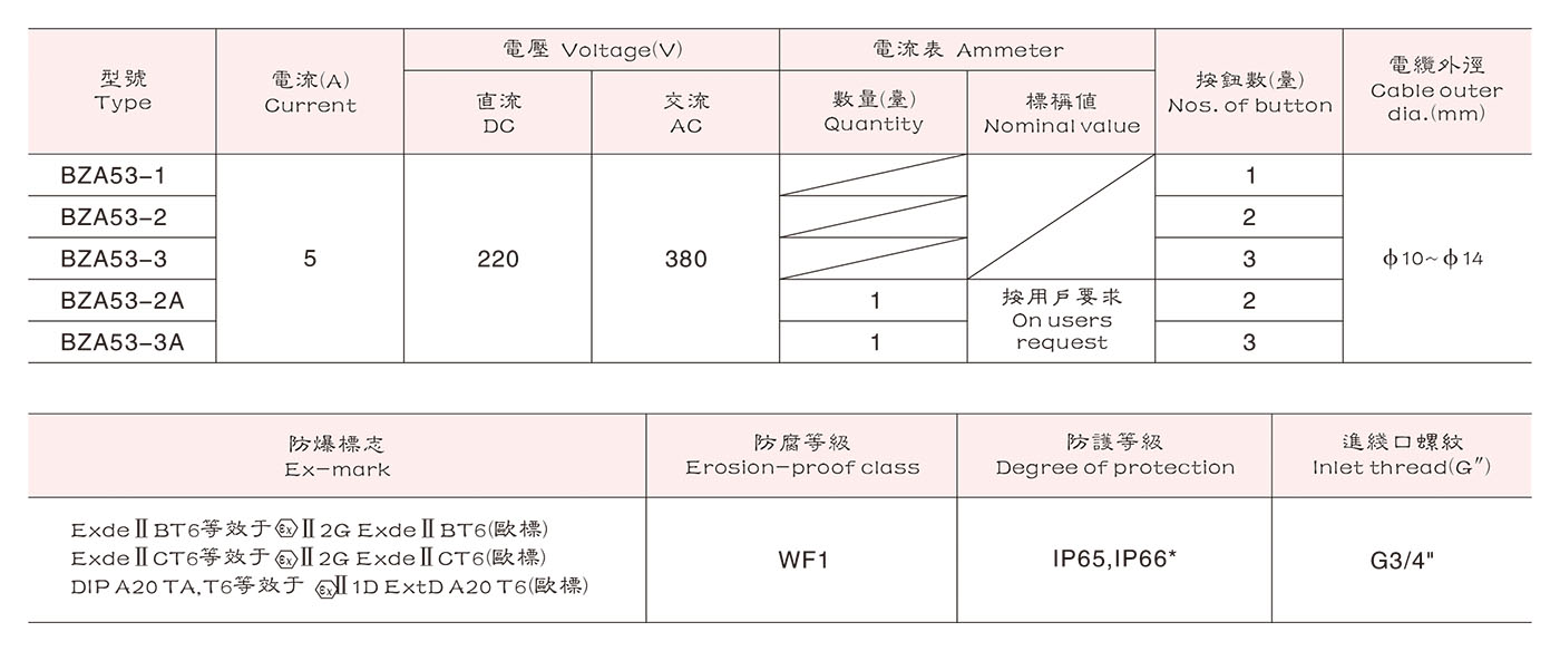 2. 內(nèi)可裝防爆型按鈕和增安型電流表;
