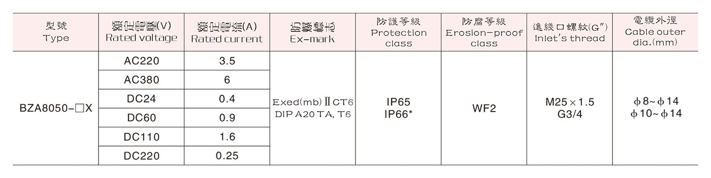 1. 產品為復合型、增安型外殼、內裝防爆按鈕、防爆信號燈等元件。