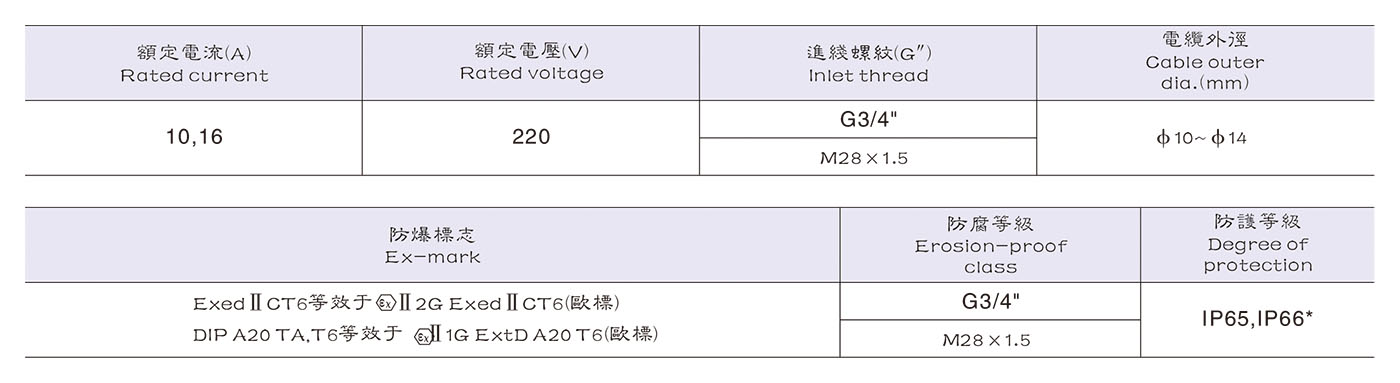 2. 增安型外殼內裝隔爆型元件;