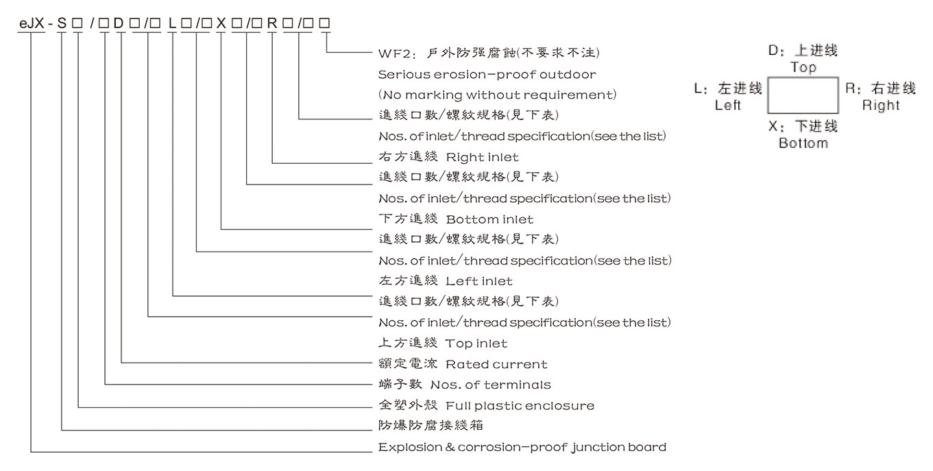 1. 按照型號含義中的規則逐條進行選擇,并在型號含義后增加防爆標志。