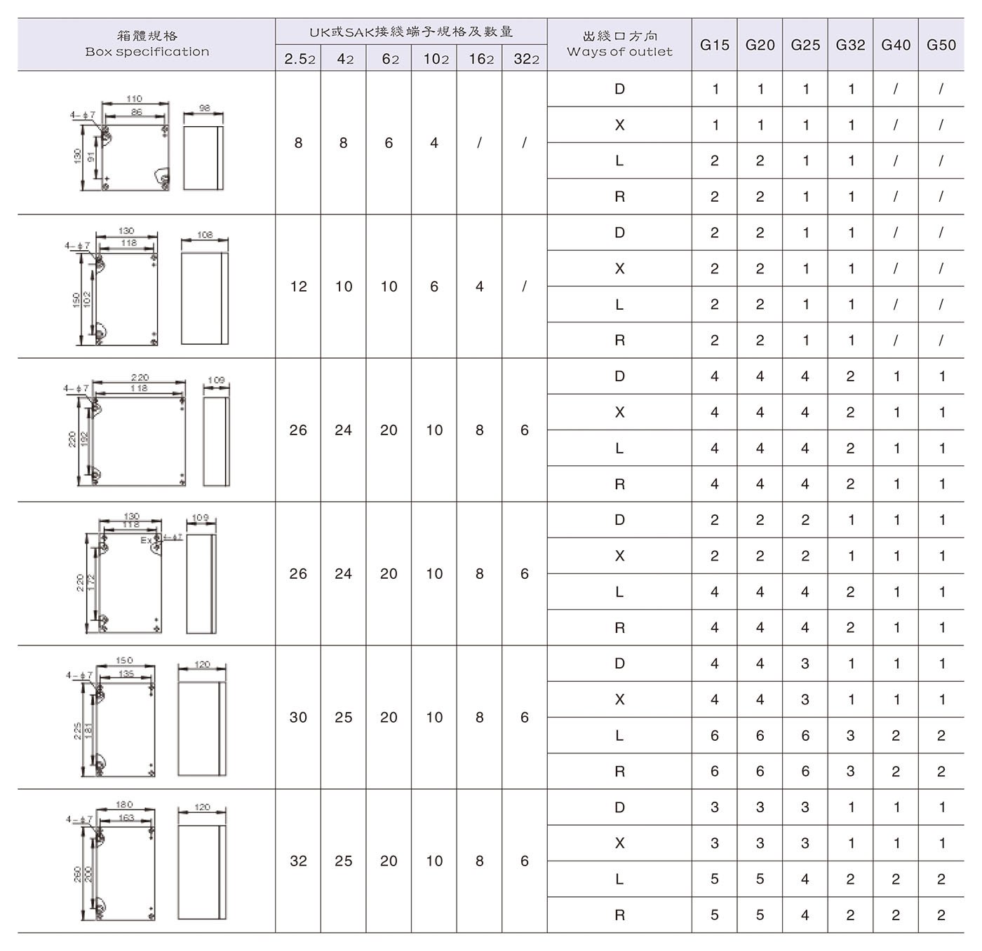 3. 殼體有各種規格,可根據電流、接線端子數及出線口數選用單殼體或單殼體的組合形式以滿足需要。